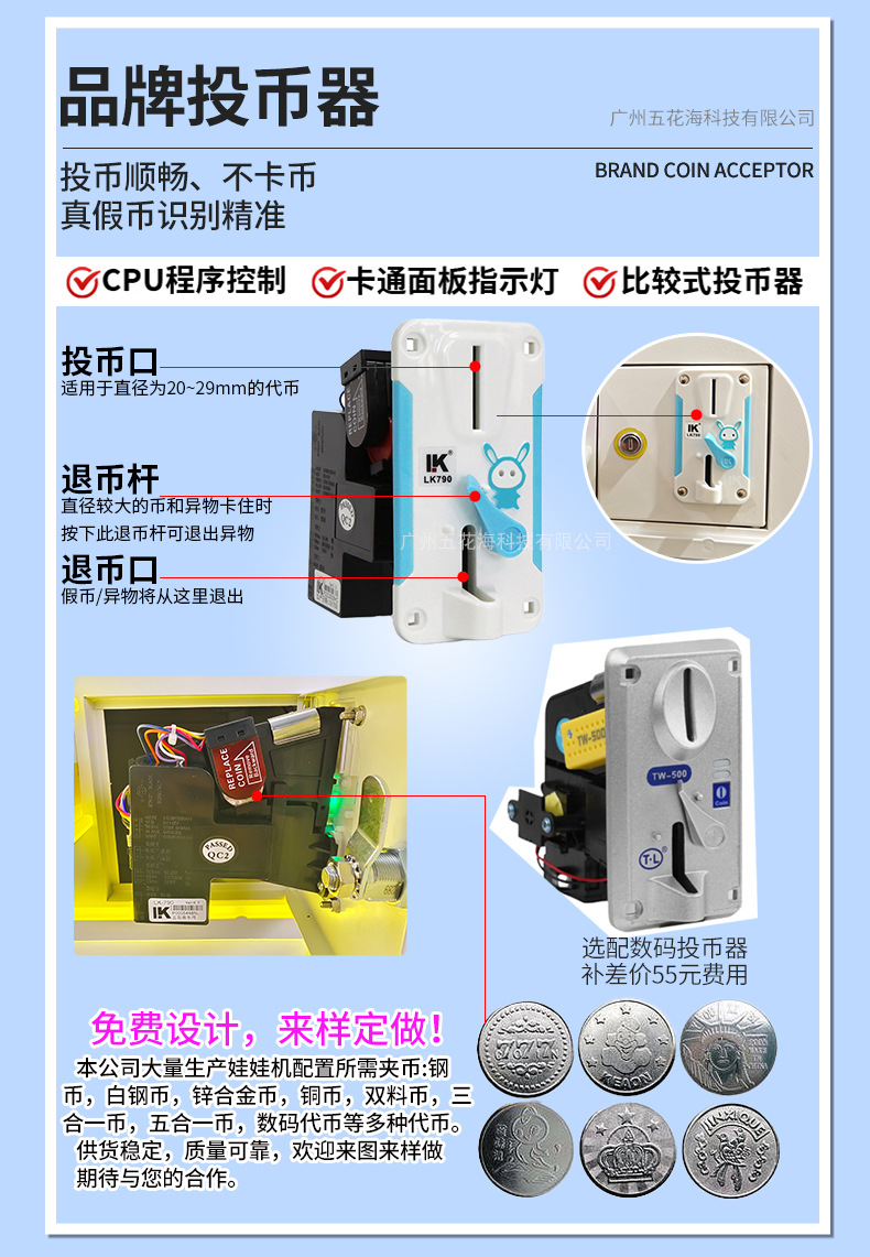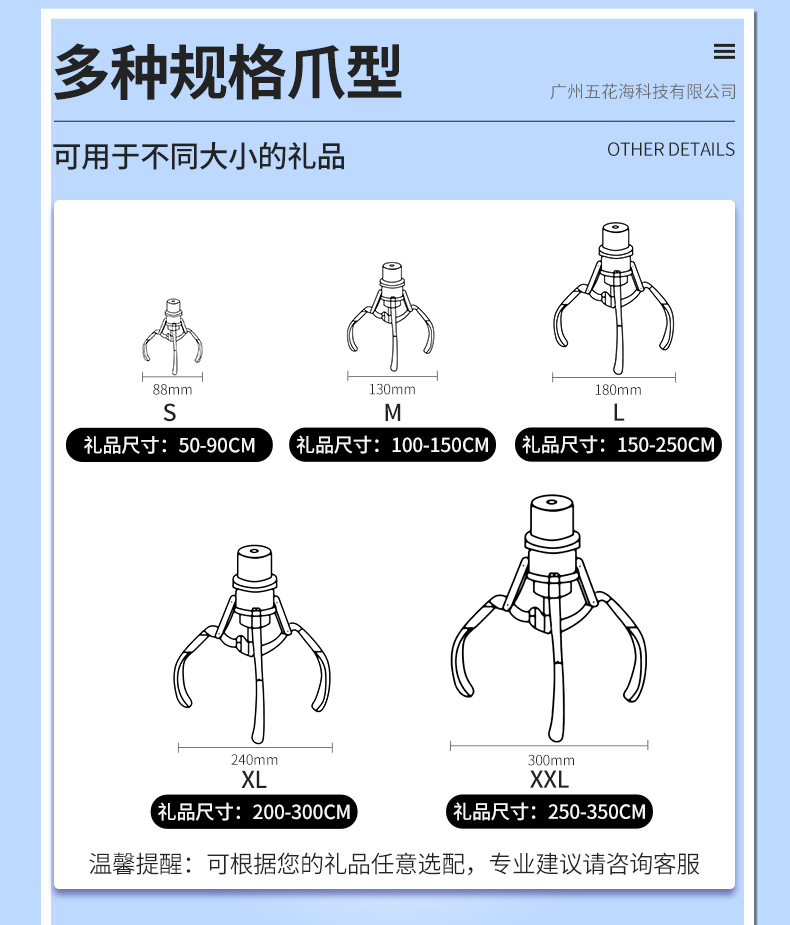 SpecificationsDeposit for Claw Machine; Hanao Hai All-Transparent Claw Machine (without top light sign); Hanao Hai All-Transparent Claw Machine (with top light)