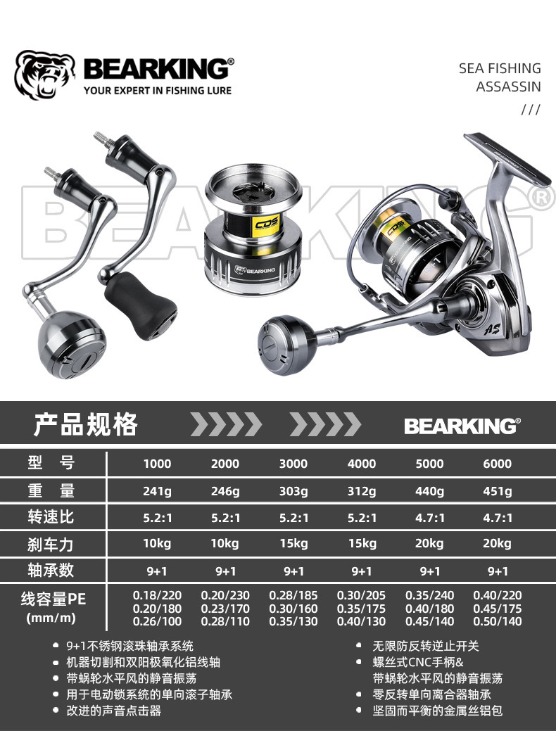 Bear King Assassin 9+1 Sea Fishing Spinning Reel