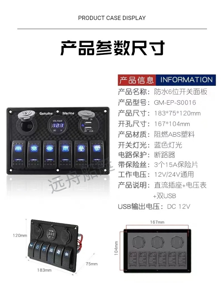 ヨットRVスイッチパネルアクセサリーUSB制御コンビネーションボート調整可能スイッチパネル