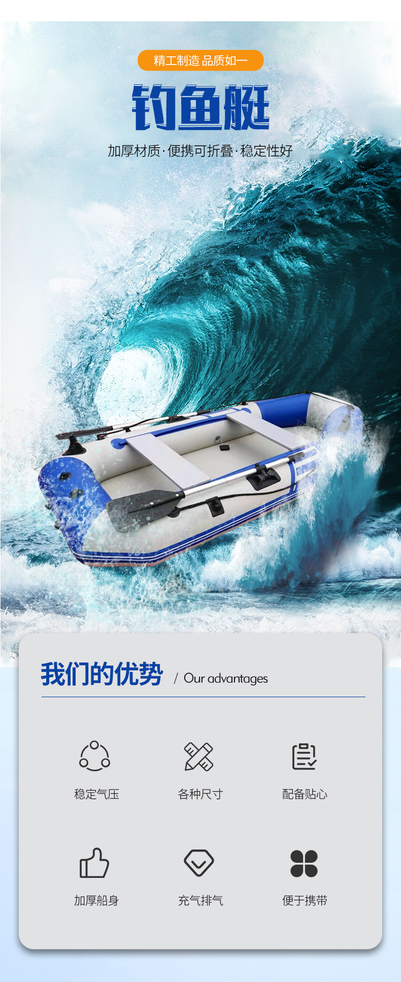 The boat is of great quality, made of good material, very convenient for fishing, and shipped quickly.